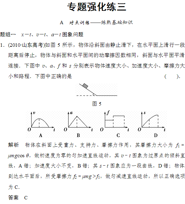 百度:2015届高考物理第一轮复习 第3章 牛顿定律 专题强化练3 新课标人教版 Word版含解析