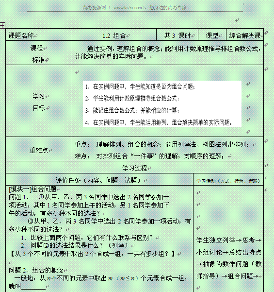 谷歌:重庆市开县中学高中数学学案:组合 选修2-3