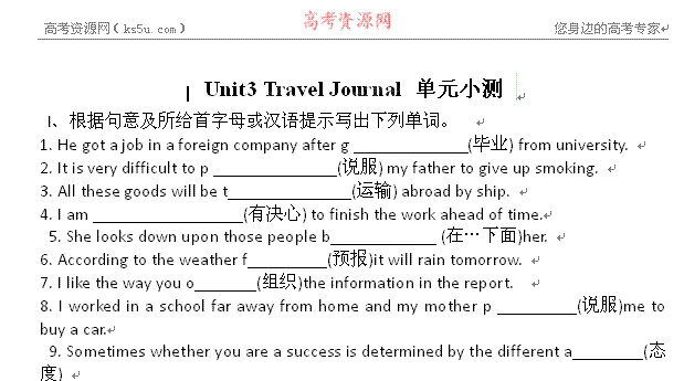 百度:山东省泰安市肥城市第三中学高一英语学案:《Unit 3 Travel journal》单元 (新人教版必修1)
