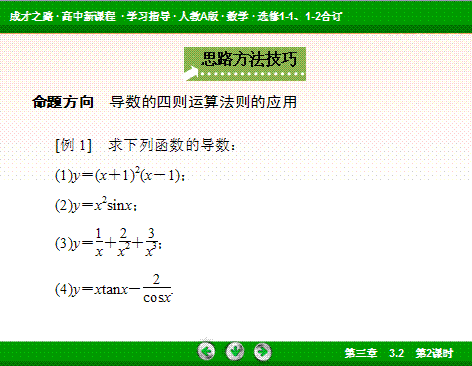 有道:2014届高二数学(人教A版)选修1-1课件:3-2-2 导数的运算法则