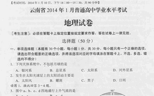 百度:云南省2014年1月普通高中学业水平考试地理试题 扫描版无答案