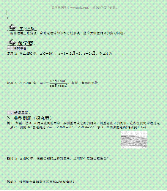 谷歌:湖北省监利县第一中学高一数学学案:§12应用举例—①测量距离 必修五