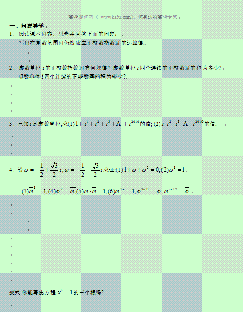 百度:江苏灌南高级中学高二数学学案:复数的四则运算(2) 选修一