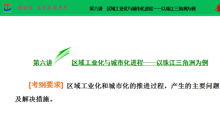 有道:2015届高三地理总复习(湘教版)配套课件:第10章 第6讲 区域工业化与城市化进程——以珠江三角洲为例