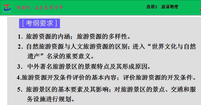 谷歌:2015届高三地理总复习(湘教版)配套课件:选修3 旅游地理