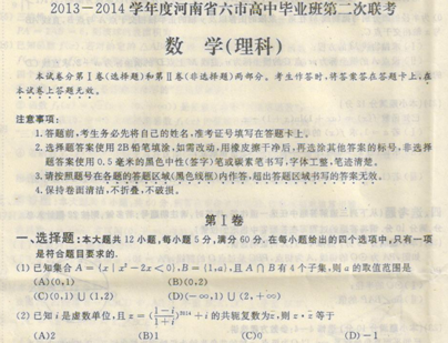 百度:河南省南阳等六市2014届高三二模数学理试题 扫描版含答案