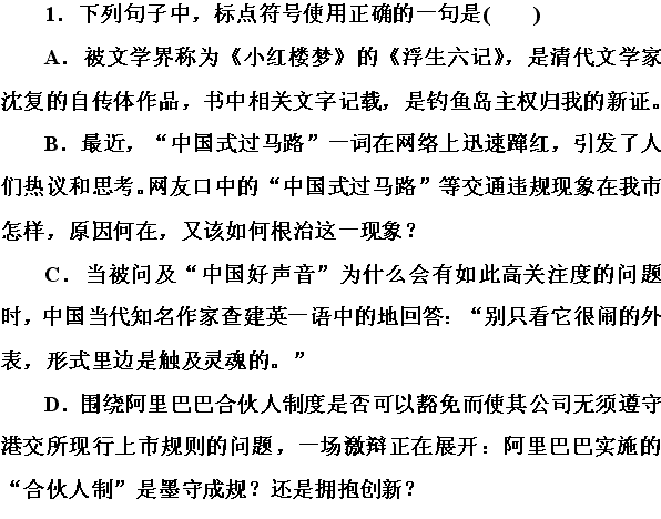 有道:《走向高考》2015一轮训练(语言文字运用):专题3 正确使用标点符号 Word版含答案