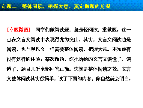百度:《步步高》2015高考语文一轮课件:第1章 文言文 专题2 整体阅读,把握大意