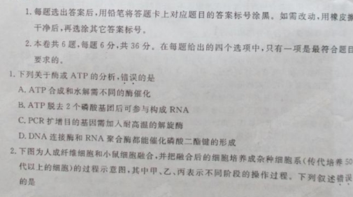 百度:天津五区县2014届高三第二次模拟考试 生物试题 扫描版含答案