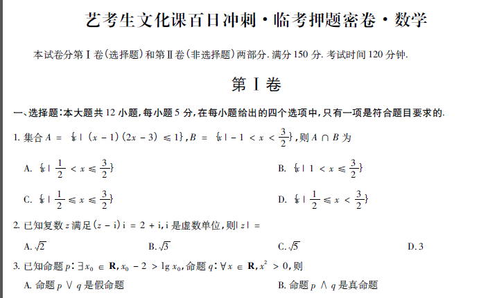 百度:新课标地区2014届高三艺考生临考押题密卷数学试题 PDF版含解析