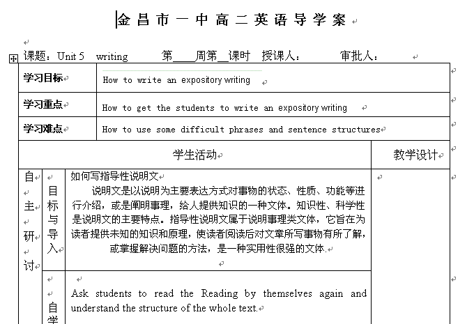 百度:甘肃省金昌市第一中学高中英语导学案:《Unit 5 First aid》writing (新人教版必修5)