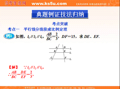 有道:《全程复习方略》2013-2014学年高中数学(人教版选修4-1)教师用书配套课件:第一讲二 平行线分线段成比例定理 (共17张PPT)