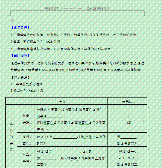 谷歌:海南省海口市第十四中学高中数学学案: 《3.1.3 概率的基本性质》 必修三