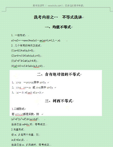 谷歌:高中数学基础知识快补学案:选考内容之一 不等式选讲