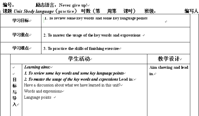有道:甘肃省金昌市第一中学高中英语导学案:《Unit 4 Body language 》5 (新人教版必修4)
