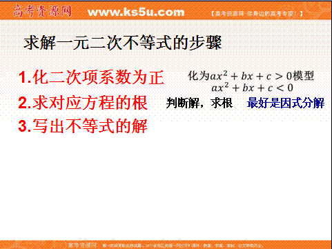 百度:重庆市萱花中学高中数学课件:3.2一元二次不等式的解法 必修三