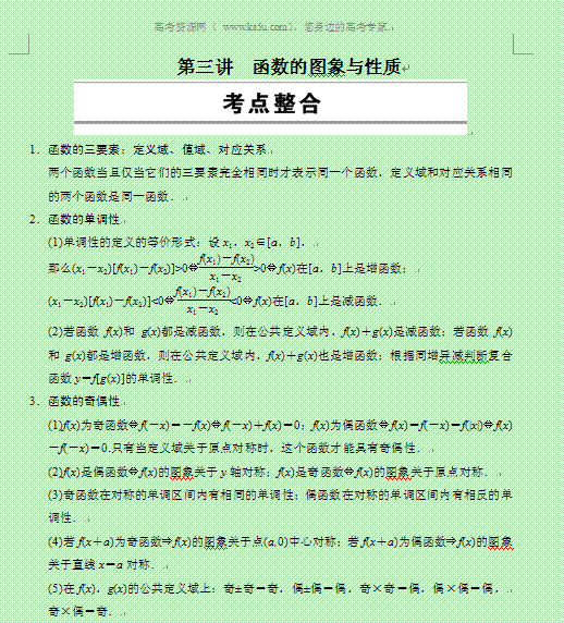 谷歌:2014年高考数学(理)考前三个月二轮专题复习素材:2.3函数的图象与性质