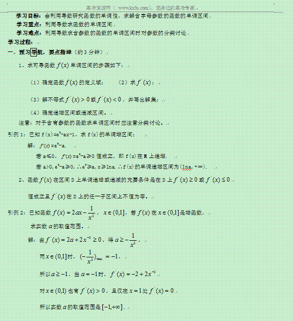 有道:江西省宜春市宜春中学高中数学(理)学案: 单调性219 选修2-2