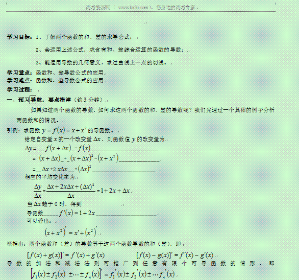 百度:江西省宜春市宜春中学高中数学(理)学案: 倒数的加法与减法10 选修2-2