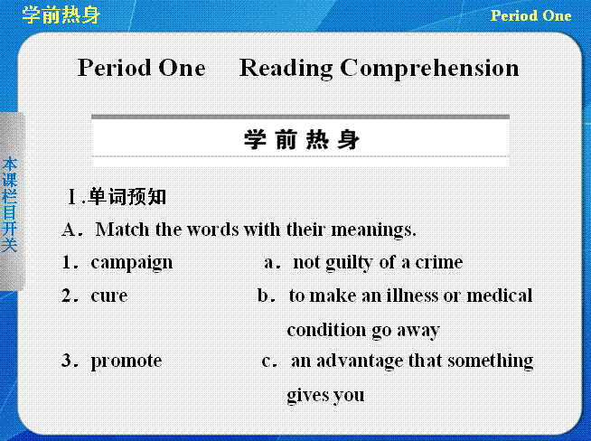 百度:湖南省株洲市第四中学高中英语(牛津译林版必修4)配套课件:Unit 1 Period One