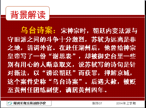 百度:湖南省长沙市长郡卫星远程学校2013-2014学年高二下学期语文(文)02-19《方山子传+游沙湖》课件