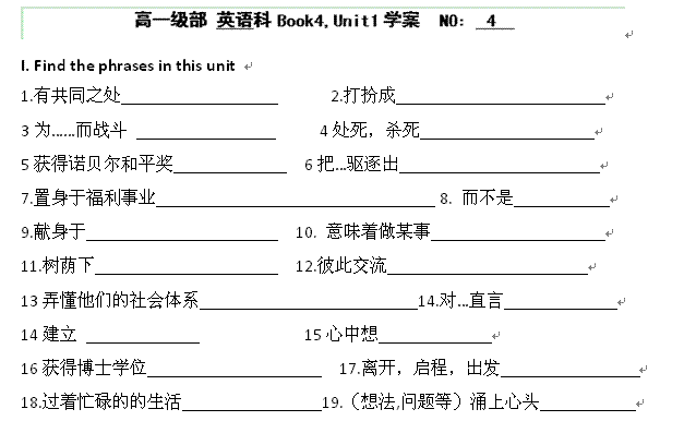 有道:山东省临朐实验中学高中英语(新人教版必修4)导学案:《Book4,Unit1 Women of achievement》4