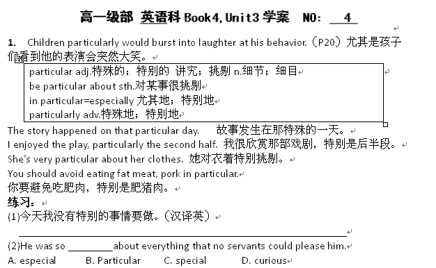百度:山东省临朐实验中学高中英语(新人教版必修4)导学案:《Book4,Unit3 A taste of English humour》4