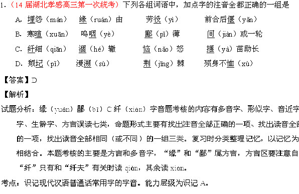 百度:专题01 识记现代汉语普通话常用字的字音-2014届高三语文试题解析分项汇编(第03期)(解析版) Word版含解析