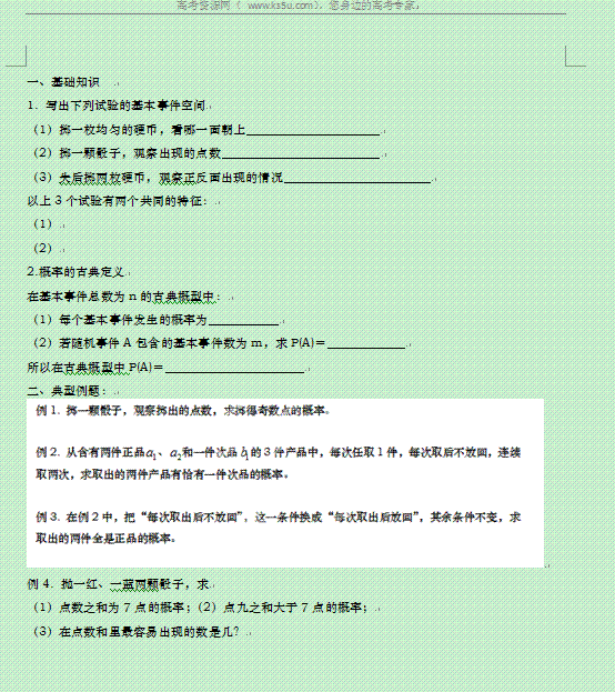 百度:江西省南昌市新建一中高中数学学案:321 古典概型