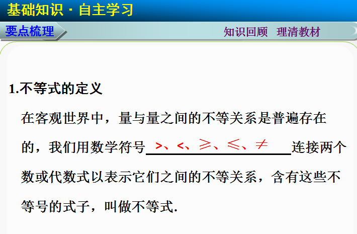 谷歌:2015届高考人教A版数学(理)总复习配套课件:7.1 不等关系与一元二次不等式