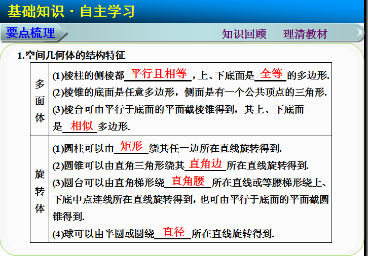 谷歌:2015届高考人教A版数学(理)总复习配套课件:8.1 空间几何体的三视图、直观图、表面积与体积
