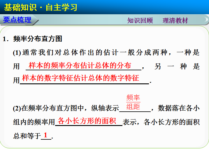 谷歌:2015届高考人教A版数学(理)总复习配套课件:11.2 用样本估计总体