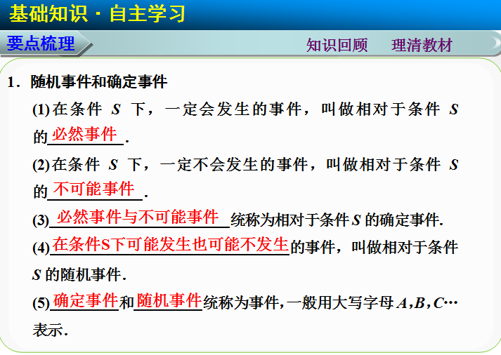 谷歌:2015届高考人教A版数学(理)总复习配套课件:12.1 随机事件的概率