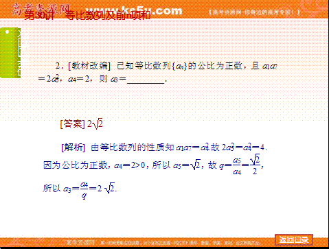 有道:《高考复习方案 》2015年高考数学(文,北师大版)一轮复习课件:第30讲 等比数列及前n项和
