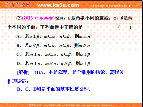 百度:《三维设计,专题强攻》2014届高三数学(人教,理)二轮复习收尾复习课件:专题四 第二讲 点、直线、平面之间的位置关系