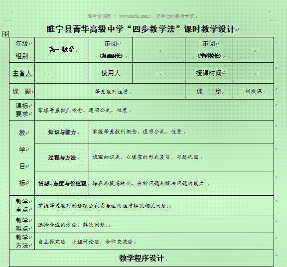 百度:江苏省徐州市睢宁县菁华高级中学高一数学“四步教学法”教案:2.2 等差数列性质一 苏教版 必修五