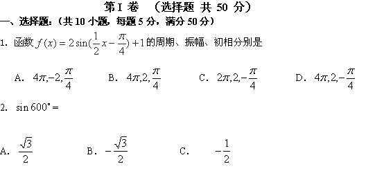 百度:《KS5U首发》山东省山师附中2013-2014学年高一下学期期中考试 数学A卷 Word版含答案