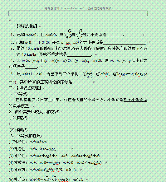 百度:江苏省常州市武进区横山桥高级中学2013-2014学年高二上学期数学学案:《第32课时 不等关系与不等式》