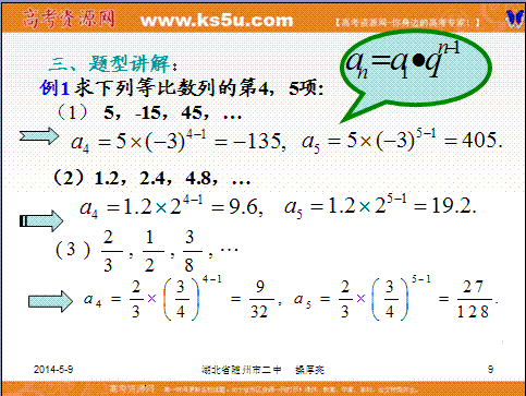 有道:湖北省随州市第二高级中学2015届高三数学第一轮复习系列讲座课件:第16讲第三章数列--等比数列