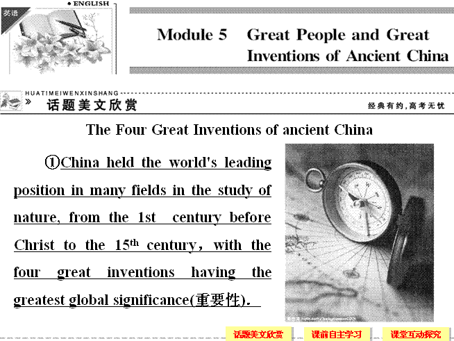 百度:2014《创新设计》高中英语(外研版必修3,课标通用)课件:Module 5 Philosophers of ancient China Period One