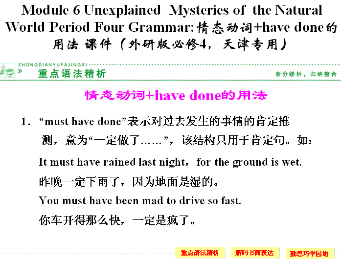 有道:2014《创新设计》高中英语(外研版必修4,天津)课件:Module 6 Period Four Grammar情态动词+have done的用法