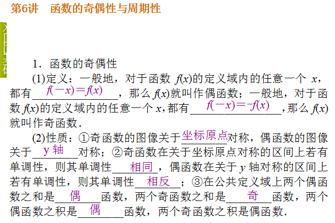 有道:2015届高考数学(理)《湖南专用》一轮复习课件:第6讲 函数的奇偶性与周期性