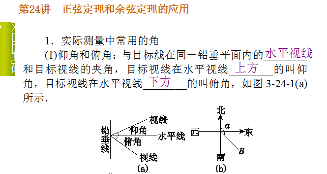 百度:2015届高考数学(理)《湖南专用》一轮复习课件:第24讲 正弦定理和余弦定理的应用