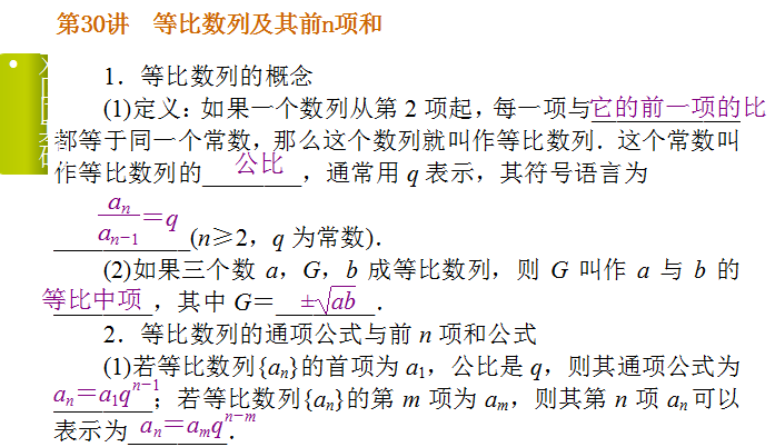 谷歌:2015届高考数学(理)《湖南专用》一轮复习课件:第30讲 等比数列及其前n项和