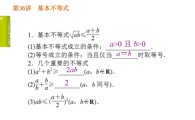 谷歌:2015届高考数学(理)《湖南专用》一轮复习课件:第36讲 基本不等式