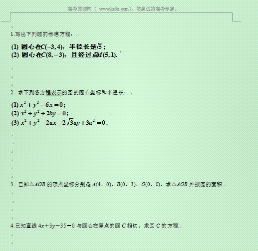 谷歌:湖南省蓝山二中高二数学(文科)学案:《必修2解析几何(二)》