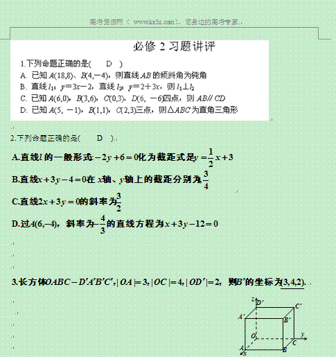 百度:湖南省蓝山二中高二数学(文科)学案:《必修2习题讲评》