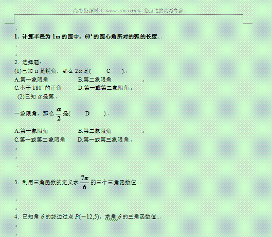 百度:湖南省蓝山二中高二数学(文科)学案:《必修4三角函数(一)》