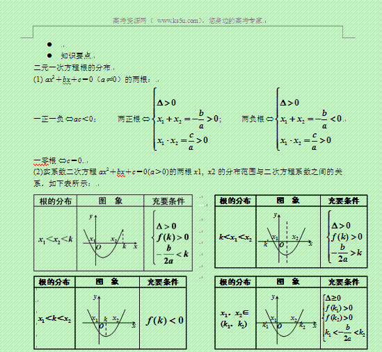 有道:湖南省蓝山二中高二数学(文科)学案:《第6讲 二次函数与一元二次方程(二)》