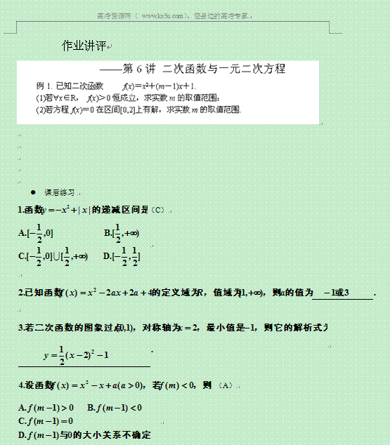 有道:湖南省蓝山二中高二数学(文科)学案:《第6讲 作业讲评》